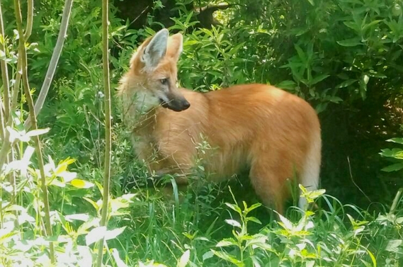 El aguará guazú (Chrysocyon brachyurus) es una especie única y endémica del continente sudamericano. Su pelaje es más bien largo, de color rojo, y en la nuca y la cruz tienen una especie de crin oscura. Es omnívoro y caza de manera oportunista ratas, armadillos, cuises, aves, pequeños vertebrados e insectos, complementando su dieta con frutos silvestres.
